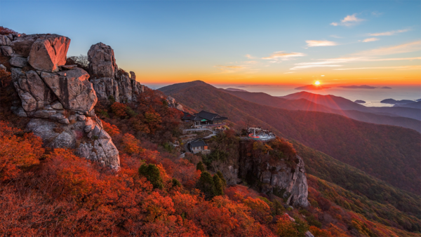 향일암은 바위 절벽 사찰에서 보는 일출로 유명. 바다와 산이 어우러진 풍경이 압권이에요. 일출 시간: 약 7:35. 팁: 계단이 많아 체력 관리!