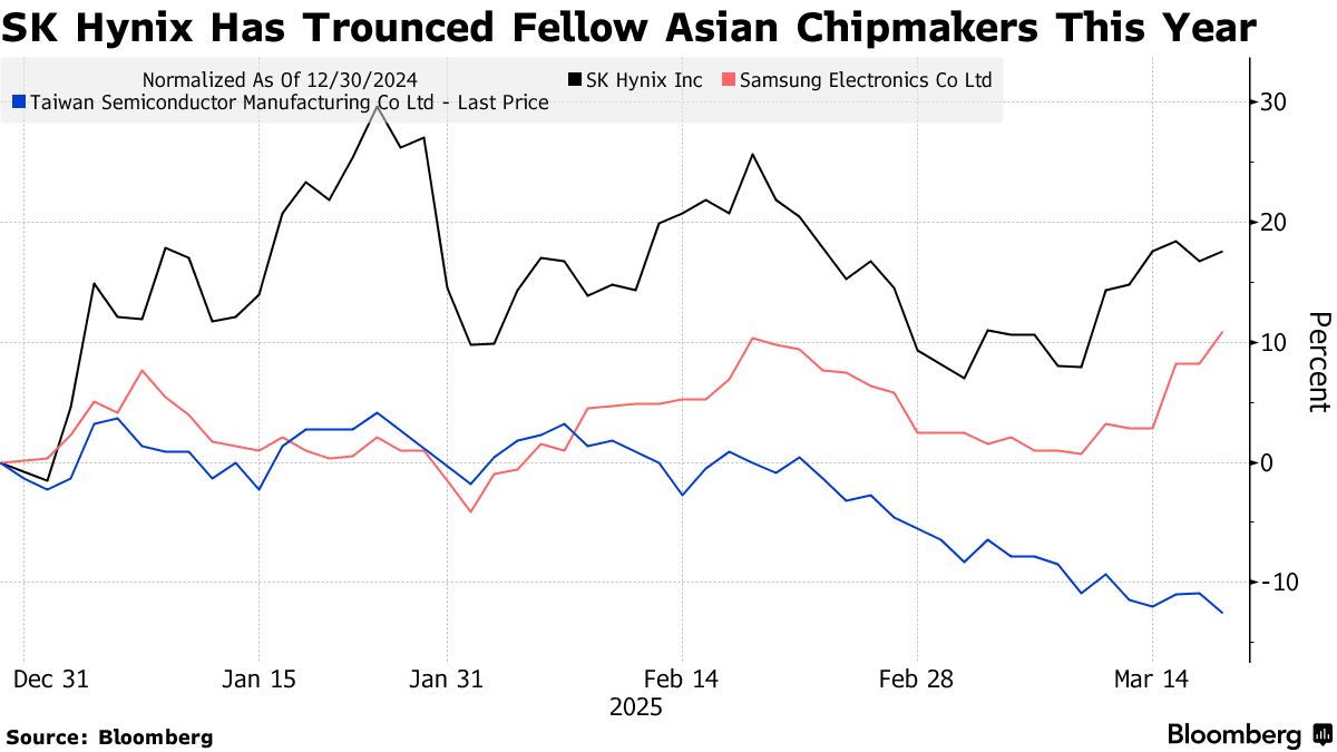 다른 회사와 비교 차트 보니 SK하이닉스가 앞서요!